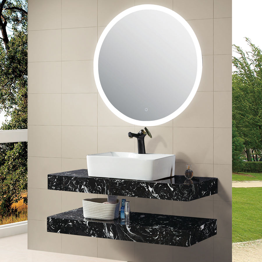Wall-mounted vanities free up floor area and simplify housekeeping. Choose slim-profile ceramic or solid-surface tops mounted onconcealed steel brackets. A shallow basin—350 mm deep—allows sufficient counter space, while integrated towel bars beneath the vanity make efficient use of vertical real estate.