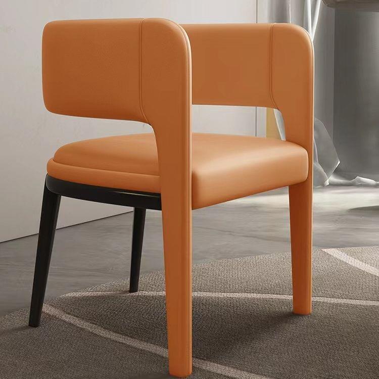 STLOU1062 Hotel Dining Chair brings Scandinavian charm into the hospitality environment with its bold orange PU leather upholstery and smoothly curved ash wood frame. The backrest and arms form a continuous arc, giving it a distinctive architectural presence while remaining comfortable and supportive.