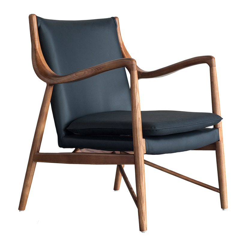 The STLSC1075 lounge armchair is a fusion of classic wood craftsmanship and sleek contemporary comfort. Its elegantly curved walnut wood frame supports plush black cushions that provide excellent seating posture and relaxation. The low-profile yet airy silhouette makes it perfect for hotel lounges, guest bedrooms, or reading corners. The visible wooden joints and tapered legs reinforce the retro-modern aesthetic, bringing timeless warmth to any hospitality space.
