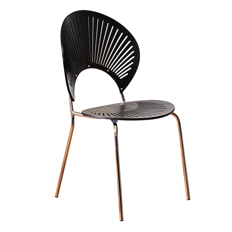 STLCH1203 introduces a futuristic flair to hotel seating with its fan-like radial backrest and fully steel construction. The curved back and seat panels provide visual drama while maintaining practical function. Each slotted detail enhances airflow, making it ideal for warm, contemporary interiors.