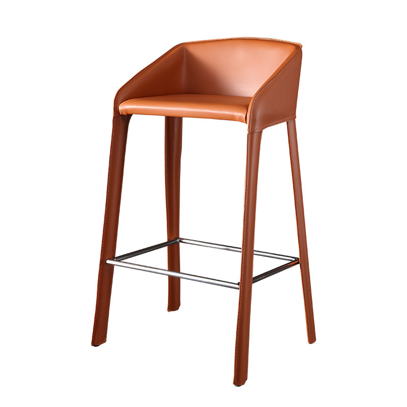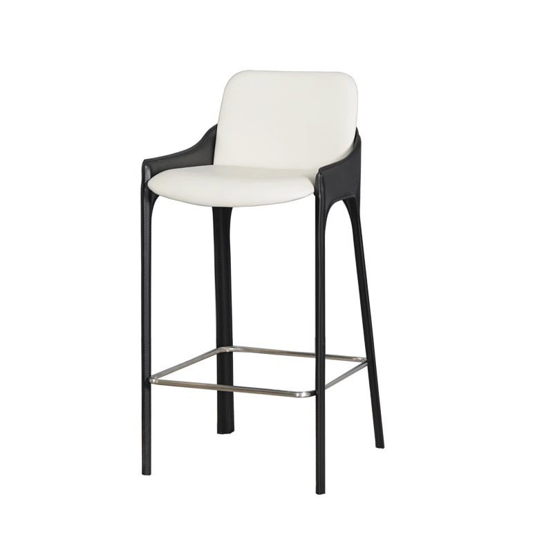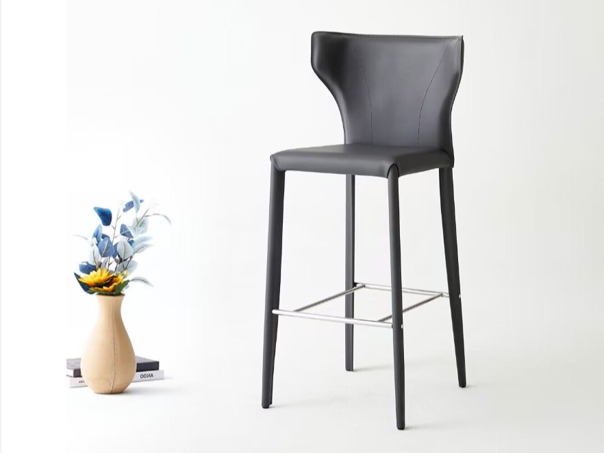 STLCH214 is a standout hotel barstool featuring a unique winged backrest that not only enhances the visual appeal but also provides superior support for guests. Upholstered in smooth leather, it combines contemporary elegance with exceptional comfort, making it ideal for high-end hotel bars and lounge areas.