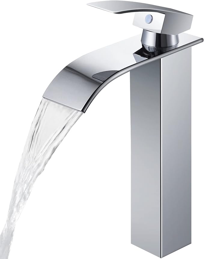 The STLBF2490 Tall Waterfall Basin Faucet brings elegance and practicality together in a striking vertical form. The extended spout height fits perfectly with vessel basins, providing ample clearance for daily use. Its chrome-plated brass body offers exceptional shine and long-term resistance against corrosion.