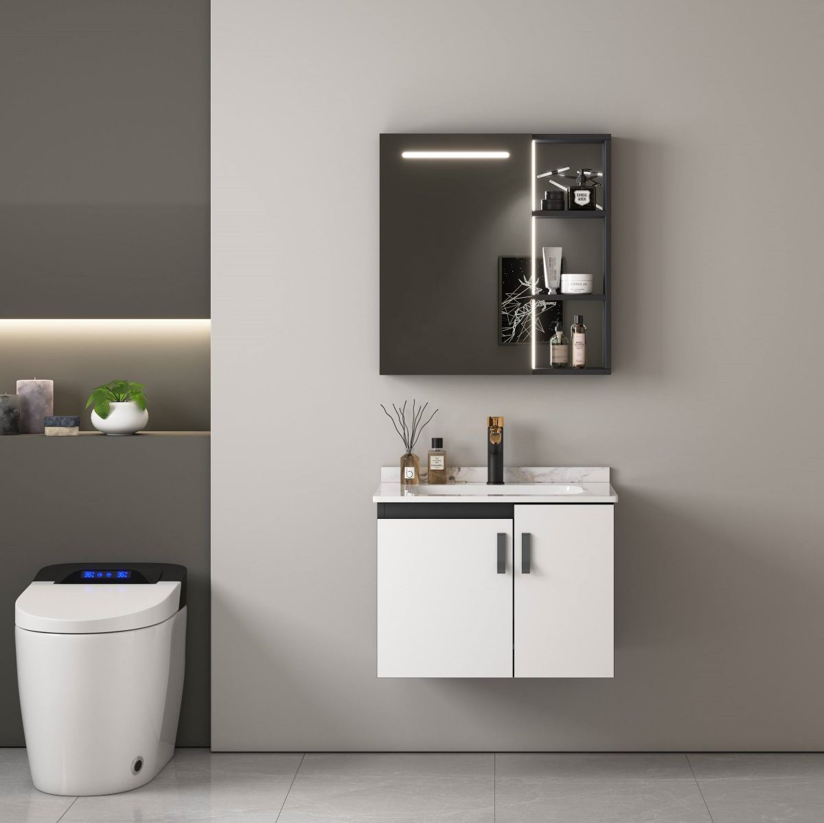 The STLBC4607 bathroom cabinet is designed for hotels seeking a balance between modern style and space efficiency. Featuring a white cabinet body with contrasting black handles, it offers a sleek yet practical solution for contemporary interiors. The LED mirror not only provides clear and bright lighting but also adds a touch of luxury to the overall setup. With both enclosed storage and open shelving, it provides versatile organization for daily essentials. Its wall-mounted design helps save floor space, making it an ideal choice for compact hotel bathrooms or upscale residential projects. Built with durable, water-resistant materials, STLBC4607 ensures reliability and longevity under frequent use.