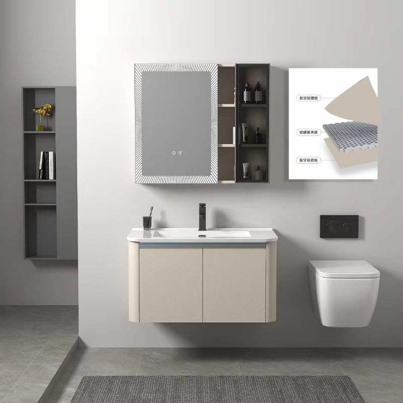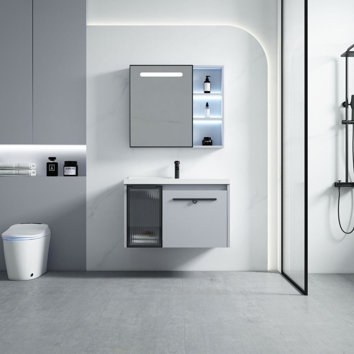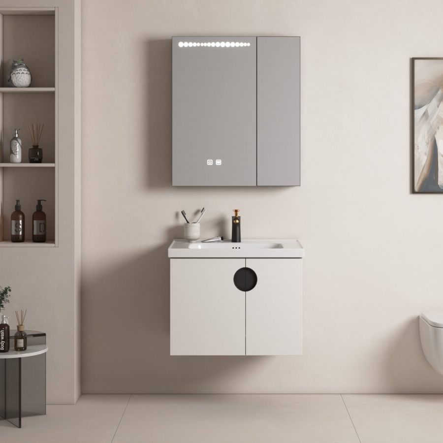 The integrated LED mirror provides clear illumination for everyday use while concealing generous storage behind its minimalist panels. The cabinet’s smooth surface and rounded detailing enhance its modern appeal, offering both style and durability.