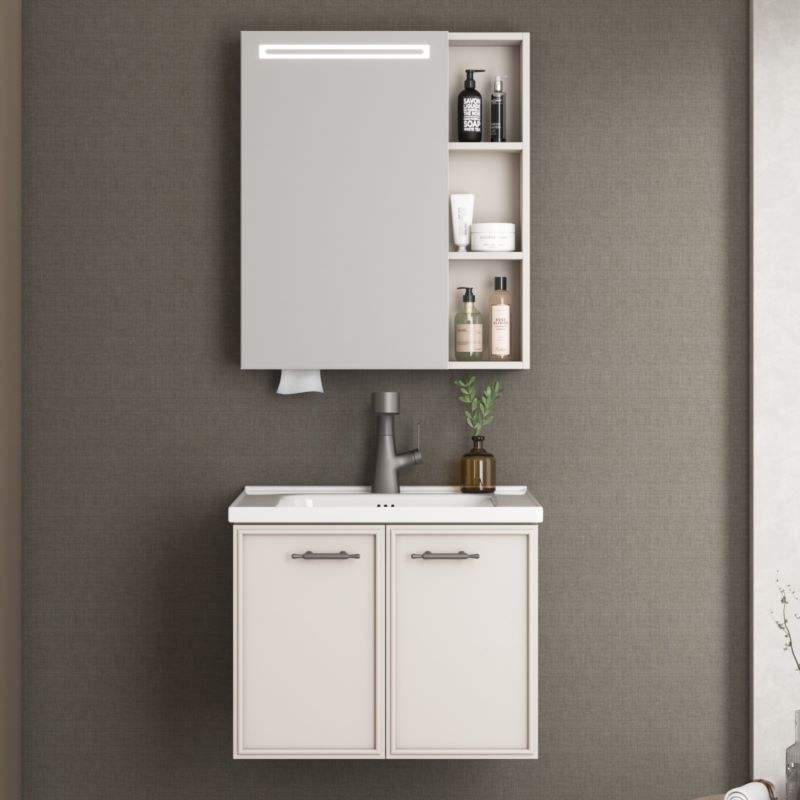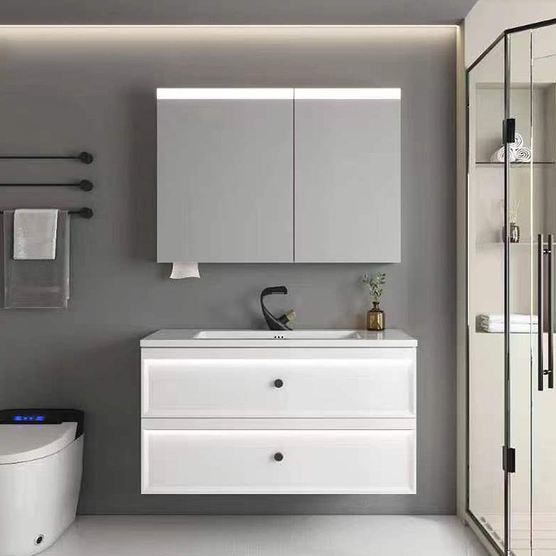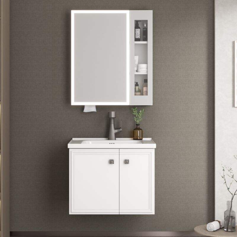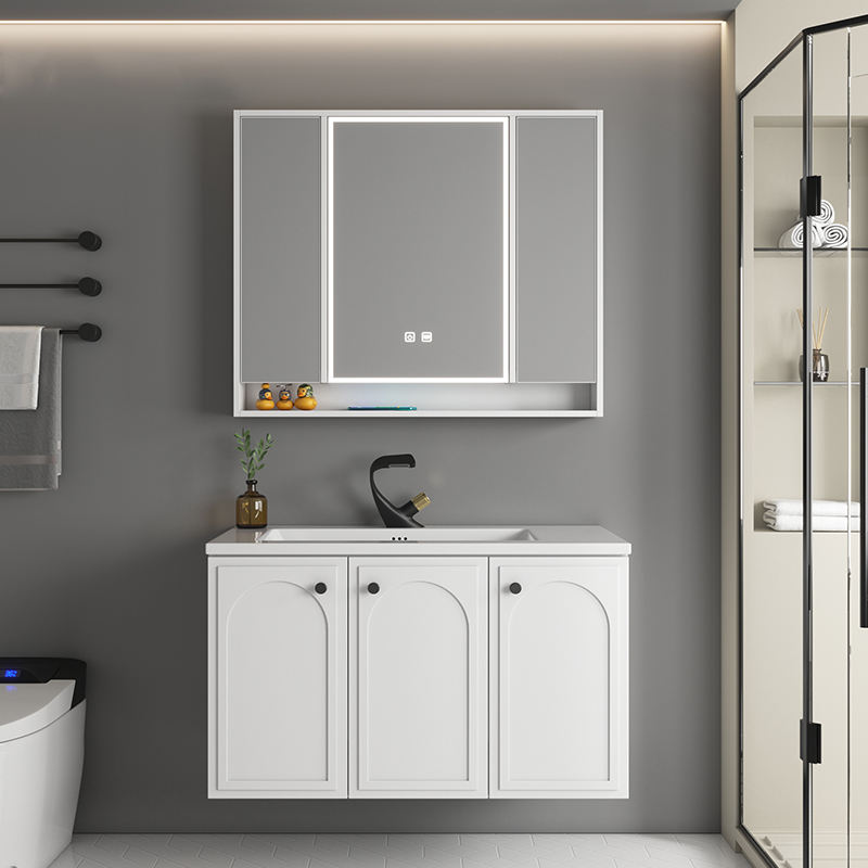 The STLOU4796 bathroom cabinet embraces timeless simplicity with clean white finishes and subtle square handles. Its LED mirror cabinet includes open shelving for daily essentials, balancing practicality and modern style.
