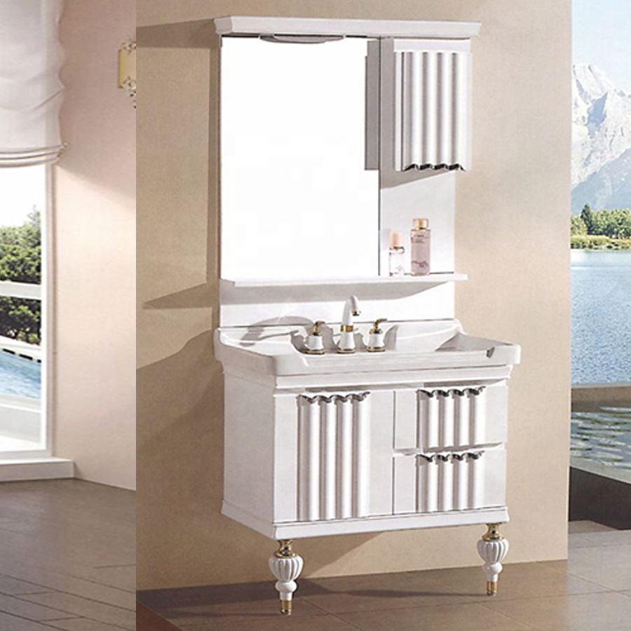 The Hotel Bathroom Cabinet STLBC5000 blends artistic design with modern functionality. Its soft cream tone and sculptural door lines create a graceful balance between traditional and contemporary aesthetics. The integrated ceramic wash basin provides smooth, stain-resistant surfaces ideal for hotel usage.