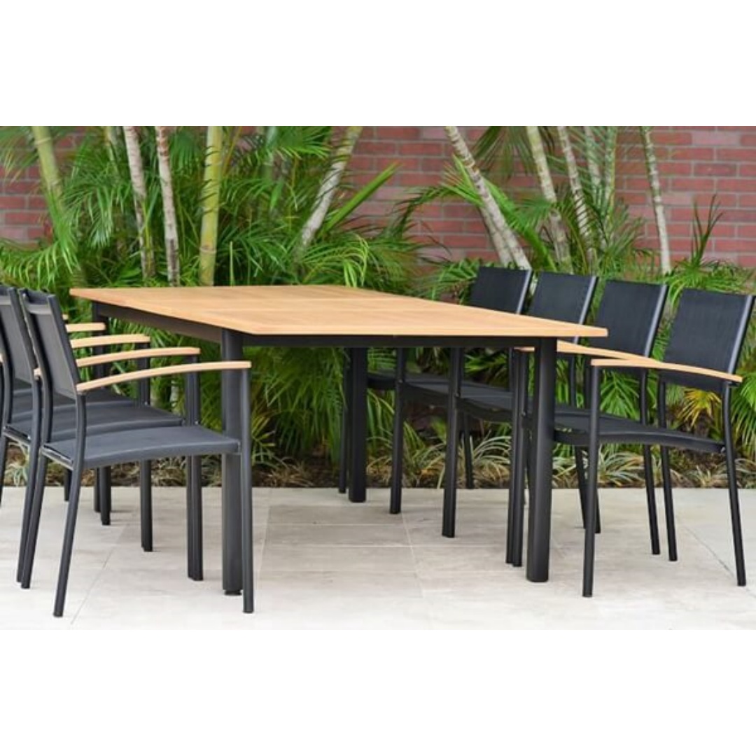Ideal for hotels, garden restaurants, and private patios, this table offers functionality and style. Its minimalist design allows it to pair with various chair styles, making it versatile for different layouts. Strong and stable, it is suitable for both commercial and residential projects requiring a large dining surface.