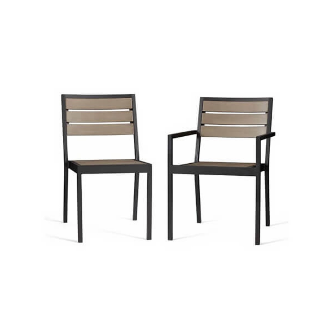 1.5 mm thickness Aluminium frame with powder coating and UV water resistant sling fabric on seating .Also we could offer steel garden furniture and round table