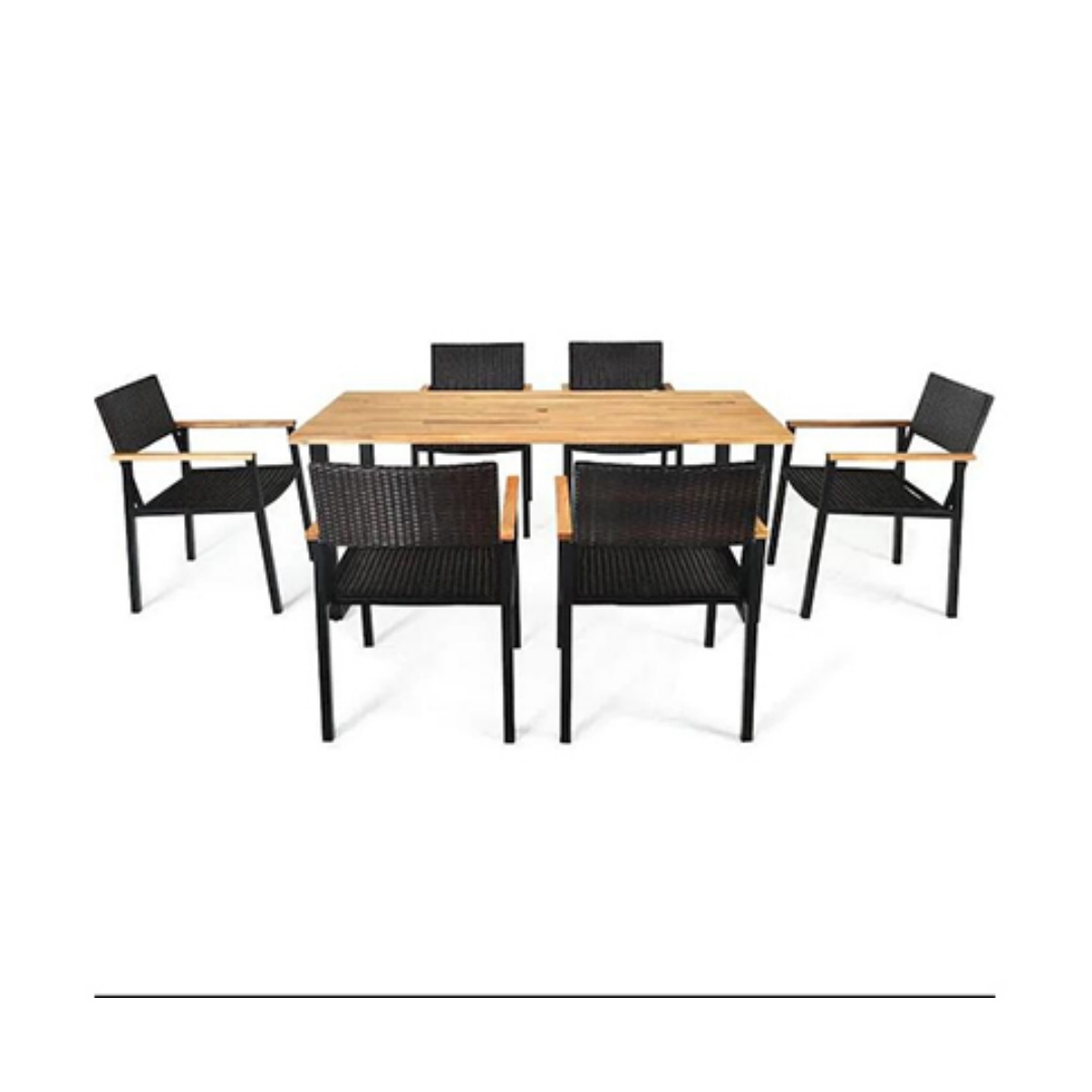 We also have other rattan garden dining set with rope,steel and teak wood and we can accept customiaztion for clients in the world