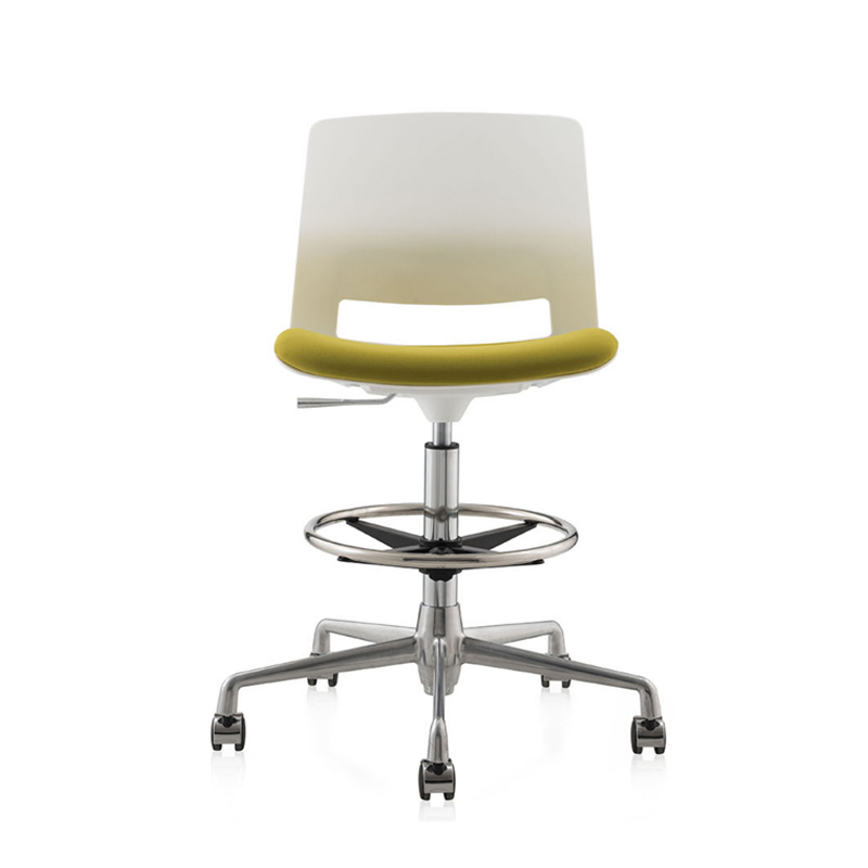 1.Our popular disc chair frame in the style of a height-adjustable bar stool. The seat is made of sturdy polypropylene with a well-padded, secured fabric seat cushion and welded metal frame providing reliable durability. Plus, thanks to the deep backrest, you no longer have to perch with bad posture at your breakfast bar, but can sit and dine in comfort.