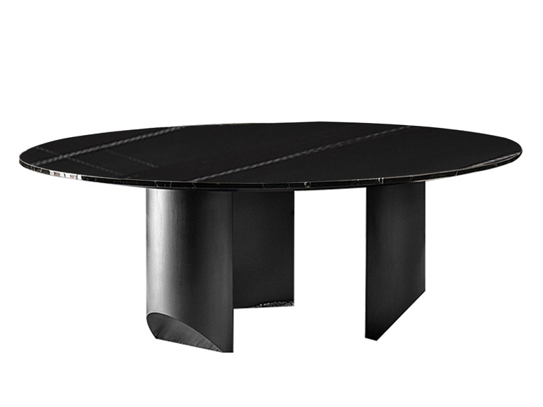 The STLTT579 is a true statement piece, combining luxurious materials with sculptural design. The table features a matte black marble oval top with subtle brown veining, offering a rich, natural texture that exudes elegance.