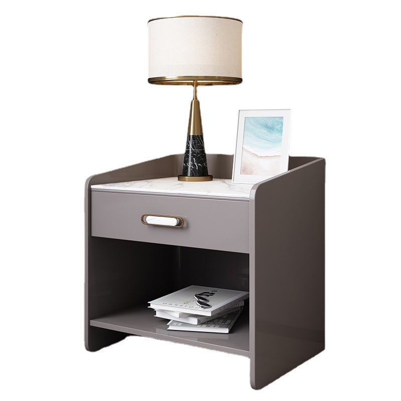 STLNT6752 elevates bedside convenience with its premium marble surface inset into the lacquered case—perfect for resting lamps and glassware. Below the marble top, a smooth-front drawer with a marble-and-gold pull conceals small items.