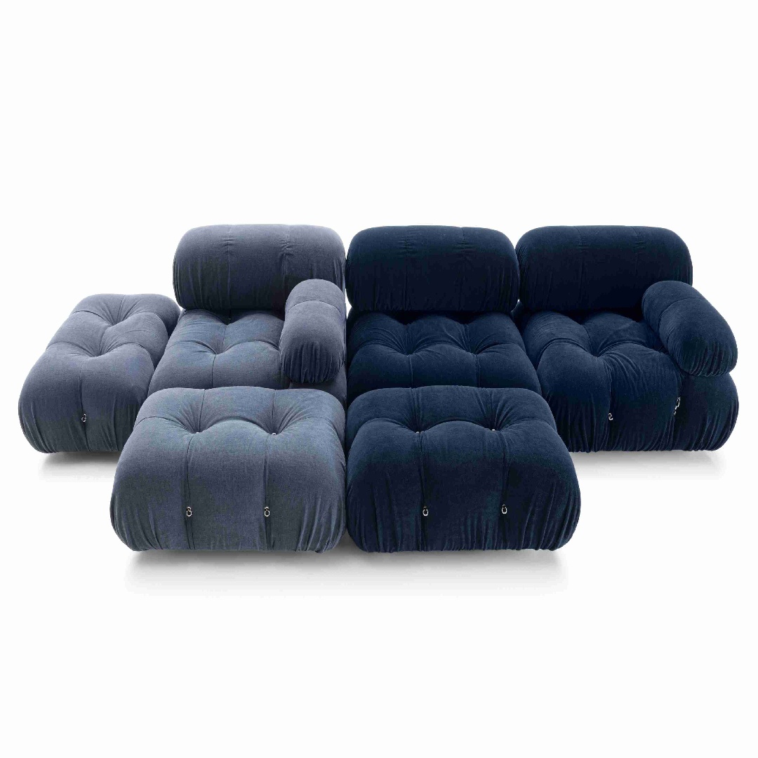 Indoor version: frame in double-paneled poplar and pine. Support in cross-woven coated rubber elastic straps. Padding in differentiated density polyurethane foam covered with a quilted mat in prewashed and sterilized goose down, stitched into separate compartments or, on request, padding in differentiated density polyurethane foam with a mat covered with acrylic fibre layers. Fabric or leather upholstery, both fully removable by Velcro fastenings.
