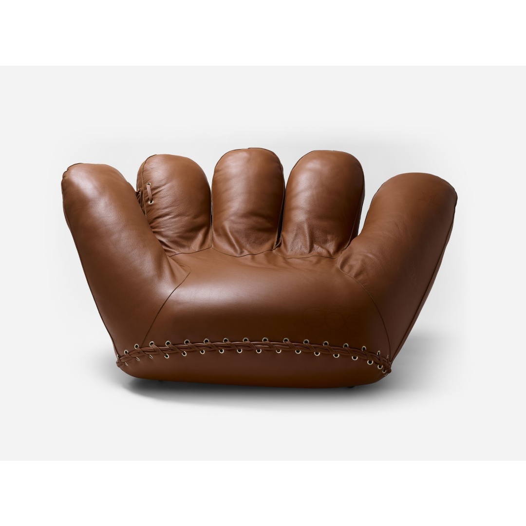 is a big comfortable chair in the form of a giant baseball glove, mounted on invisible wheels. With this project the designers, inspired by the poetics of Pop Art, gave material form to their admiration for the legendary American baseball star Joe DiMaggio. With a courageous shift of scale, they transformed the glove into a welcoming place to sit, inserting a hyperrealist figure borrowed from the world of art into the domestic environment.