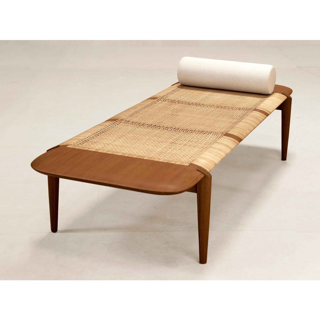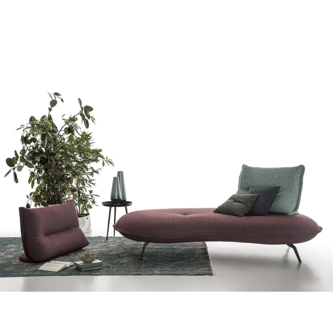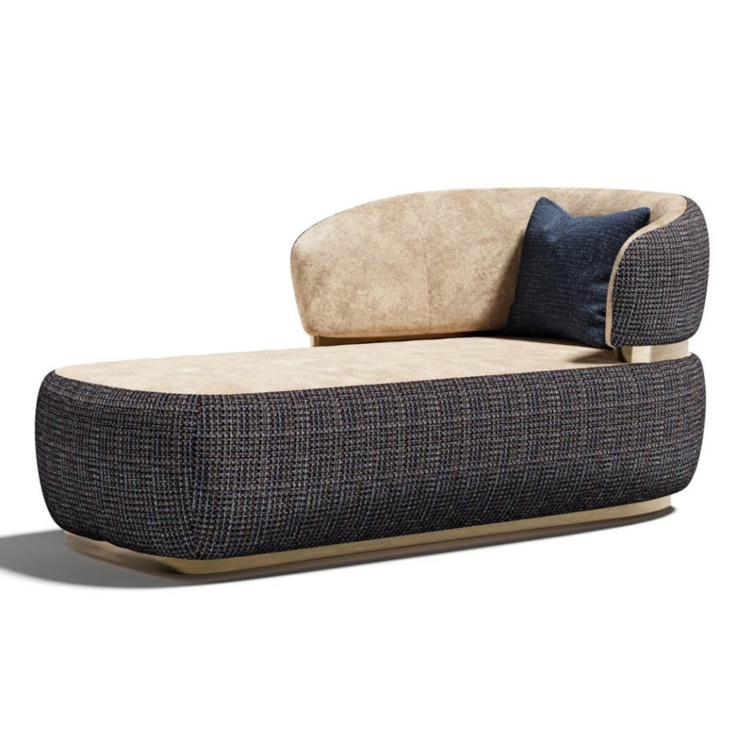 A versatile chaise for guests to relax, read, or wait in style. The side-profile design makes it ideal as a transitional piece between public and semi-private zones in hospitality interiors.