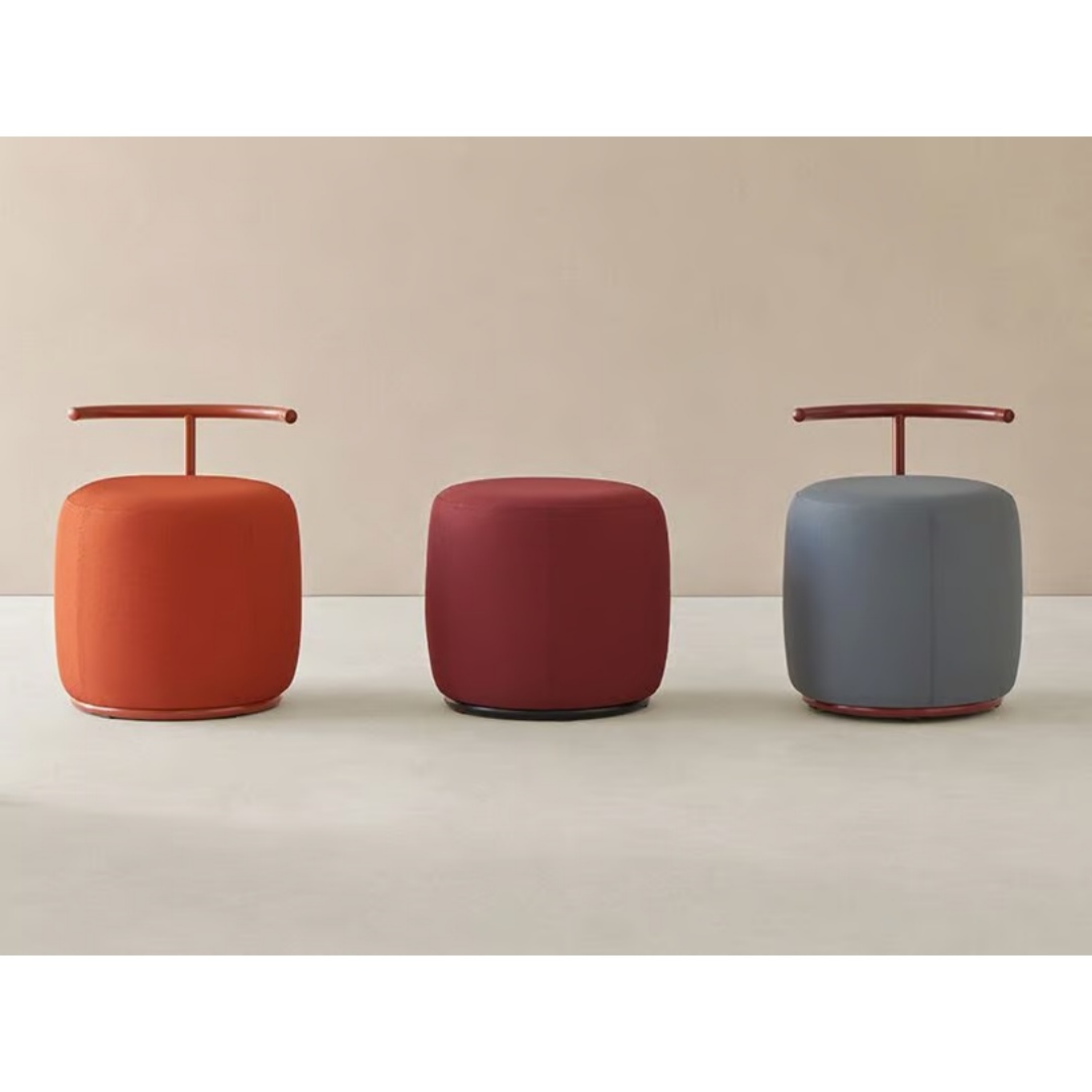 The STLOT7141 hotel ottoman seating cluster comprises three organically shaped poufs upholstered in high-performance wool-blend fabric—light gray, deep brown, and slate teal. This hotel ottoman seating arrangement offers a relaxed seating vignette for guests, with softly rounded forms that blend seamlessly into contemporary interiors. The hotel ottoman seating modules balance resilient textile performance with inviting curves.
