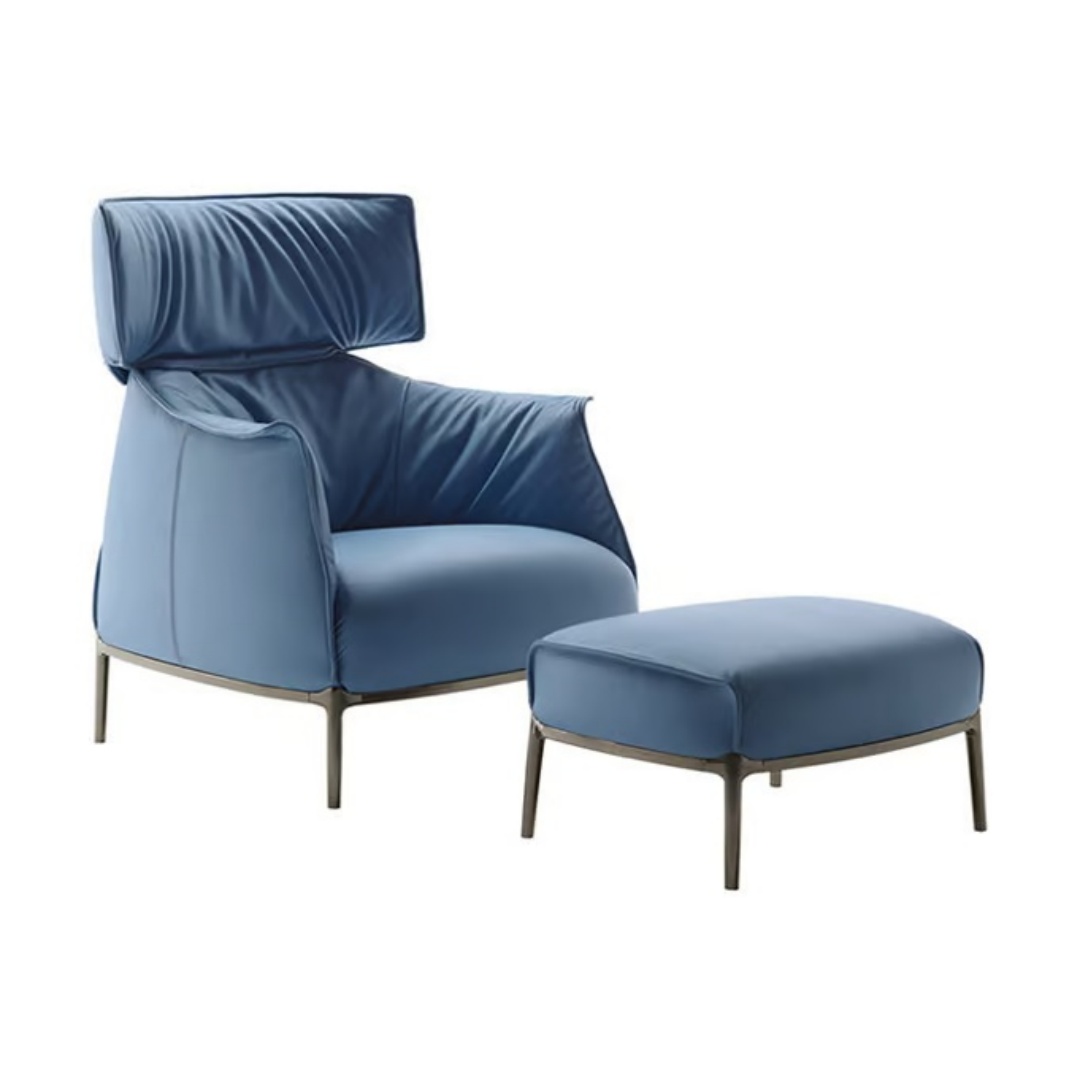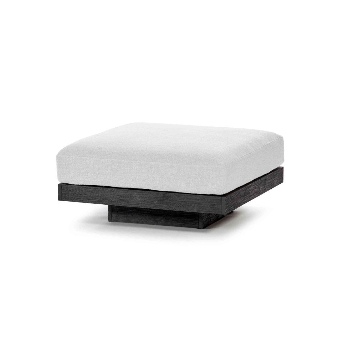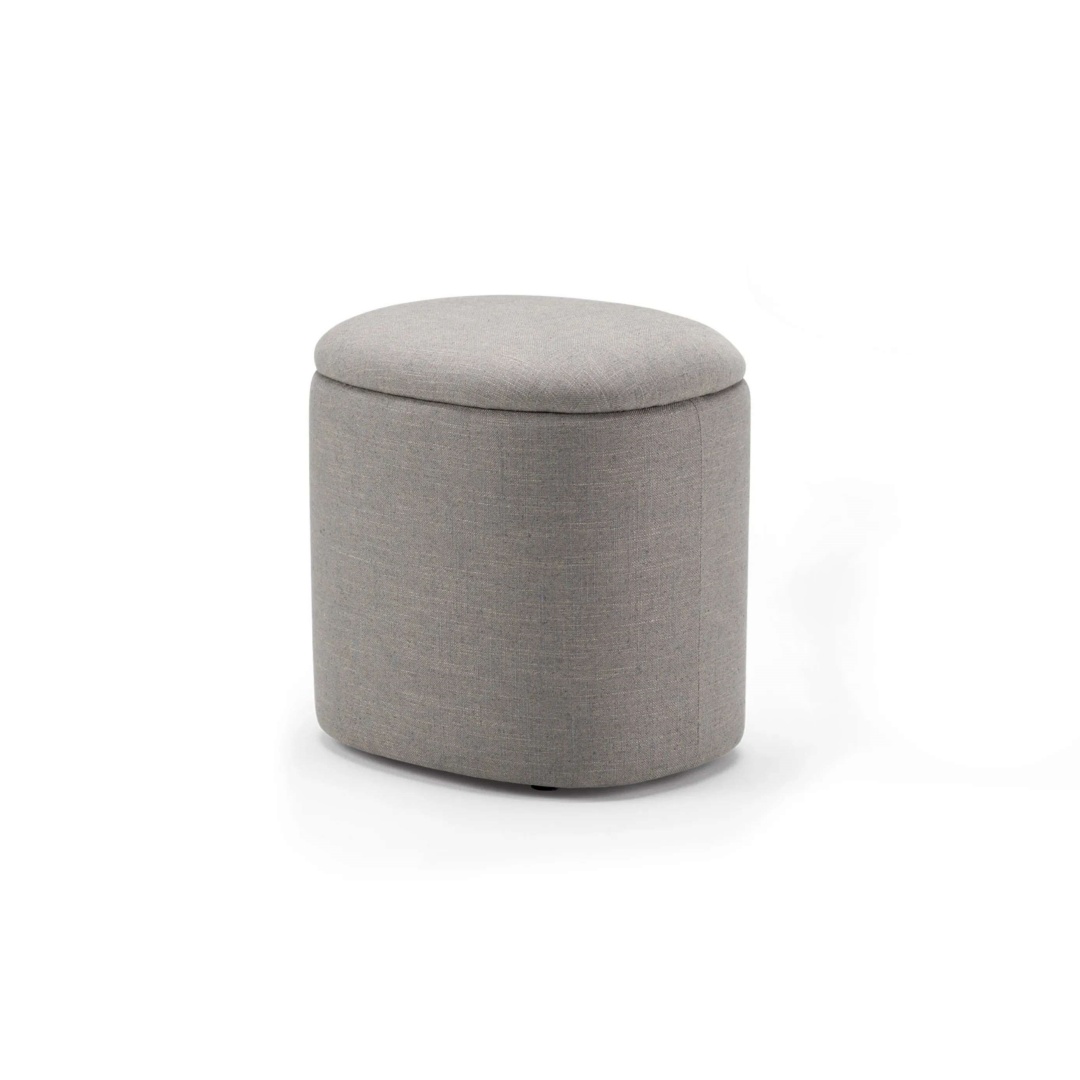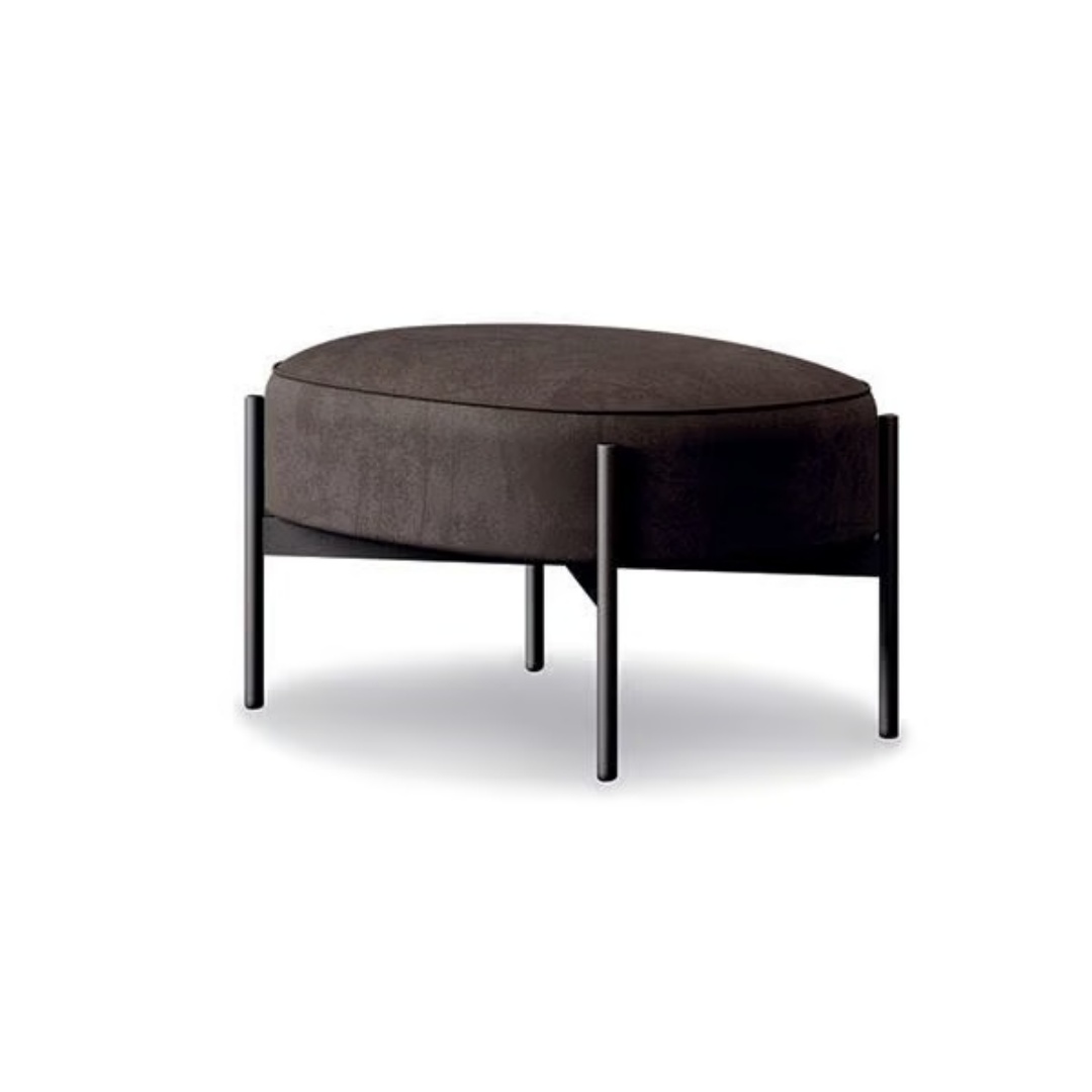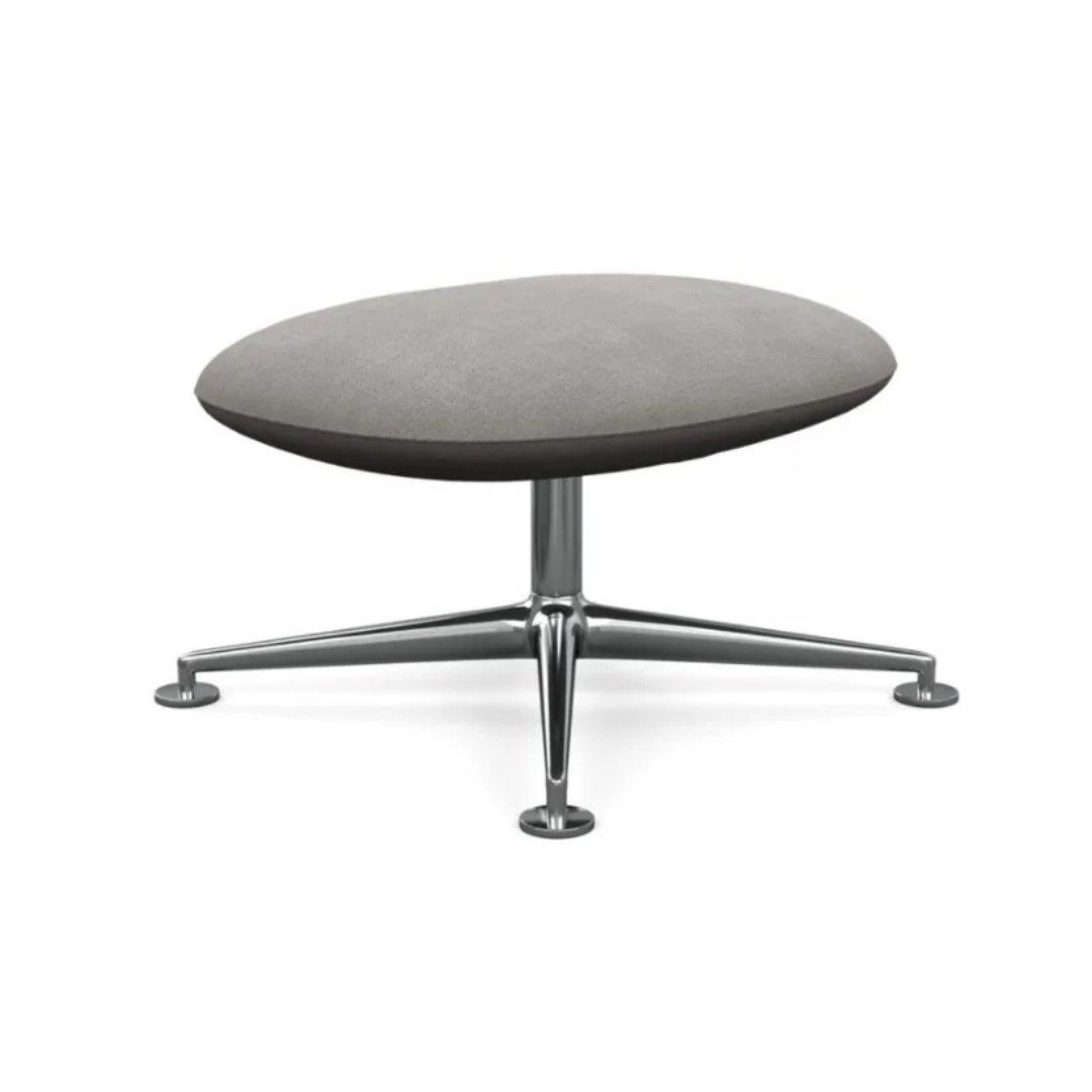 STLOT7178 offers a gently rounded cushion upholstered in dove-gray performance fabric, filled with high-resilience foam. Its sleek star-shaped base of cast aluminum is polished to a gleaming finish and fitted with adjustable glides for stability. Measuring 60 cm wide × 40 cm deep × 35 cm high, it rotates smoothly as you shift positions, serving equally well as a footrest or low occasional table.