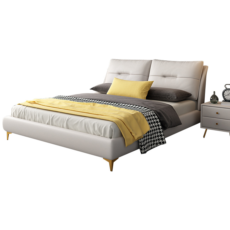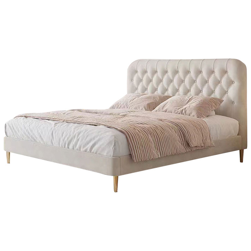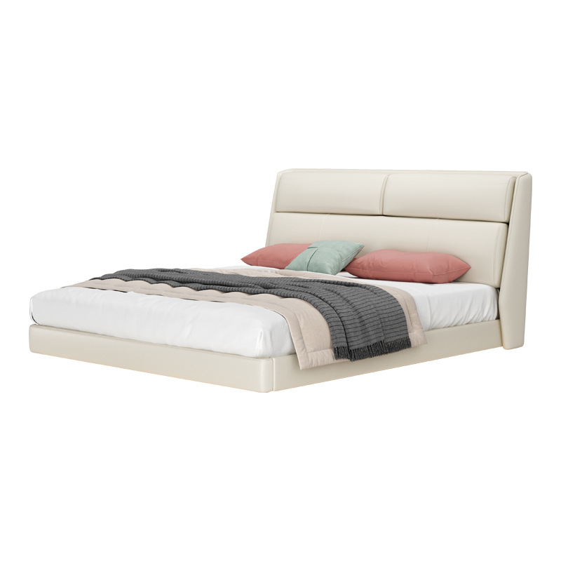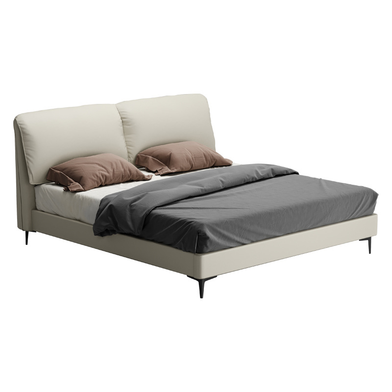 STLOU882 embodies modern calm with its low-slung frame and smoothly angled headboard. Wrapped in smooth neutral upholstery, this bed design speaks to a refined, design-conscious guest experience.