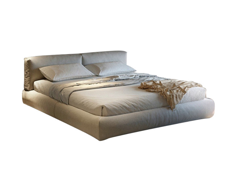 The gently curved leather headboard in a soft cognac hue adds a luxurious touch without overwhelming the space. With its low platform and slim profile, the bed maintains visual openness in compact or design-focused rooms. Its construction blends strength and flexibility, ideal for commercial applications in urban hotels and boutique stays.